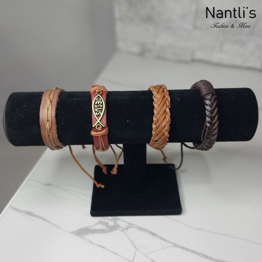 Pulseras para hombres o Mujeres Set BR0023-4 Leather Bracelets for Men or Women 4 Pieces Set