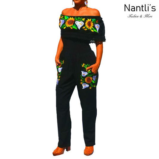 Palazzo Bordado Mexicano TM-79004-G Black Mexican Embroidered Jumper