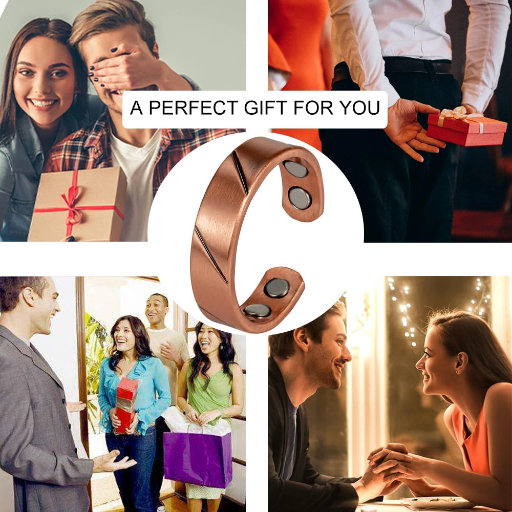 Anillo para Hombres o Mujeres Ring for Men or Women Pure Copper Magnetic Adjustable Rings Magnet Line Open Cuff 6mmResizable Ring