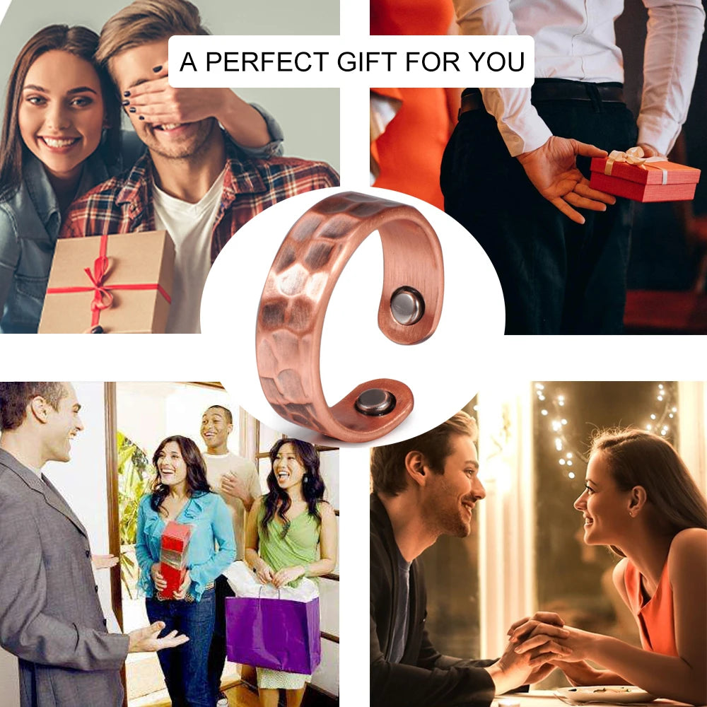 Anillo para Hombres o Mujeres Ring for Men or Women Pure Copper Magnetic Rings Adjustable 6mm Cuff Resizable Finger Rings