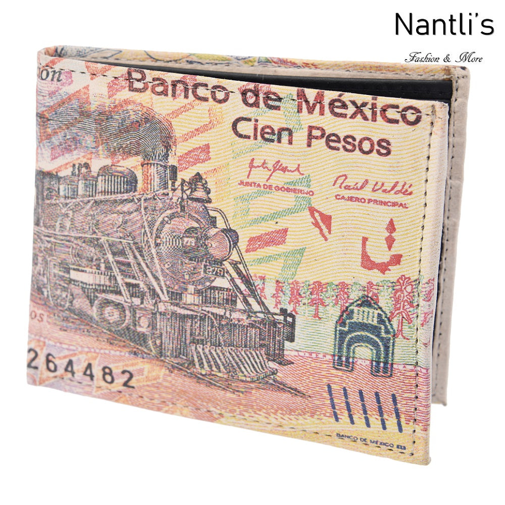 Cartera de piel para hombre con impresion de Cien Pesos / 100 Pesos. Hecho en Mexico.