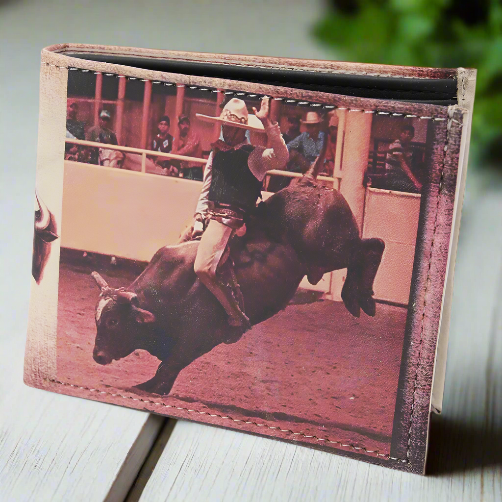 Leather wallet for men with Roddeo Bullrider print. Made in Mexico.