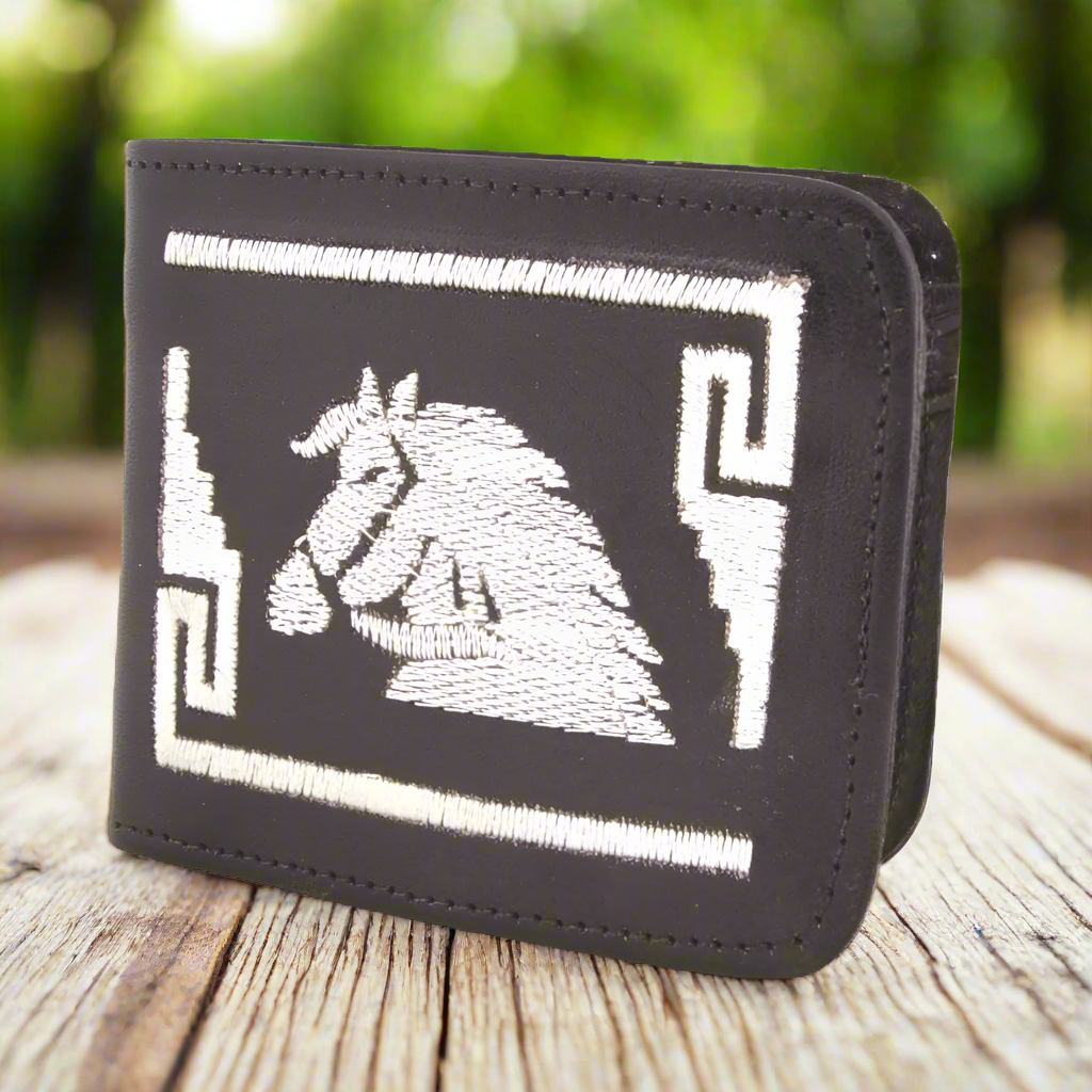 Embroidered leather wallet for men, with Horse embroidery. Made in Mexico.