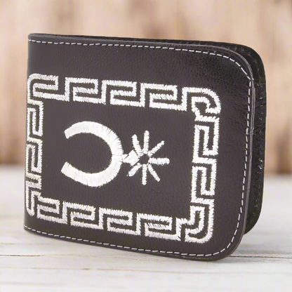 Embroidered leather wallet for men, with spur embroidery. Made in Mexico.