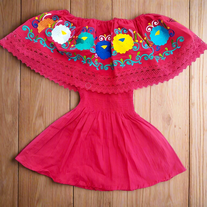 Mexican Embroidered Blouse TM-77508 Fuchsia - Blusa Bordada Mexicana.