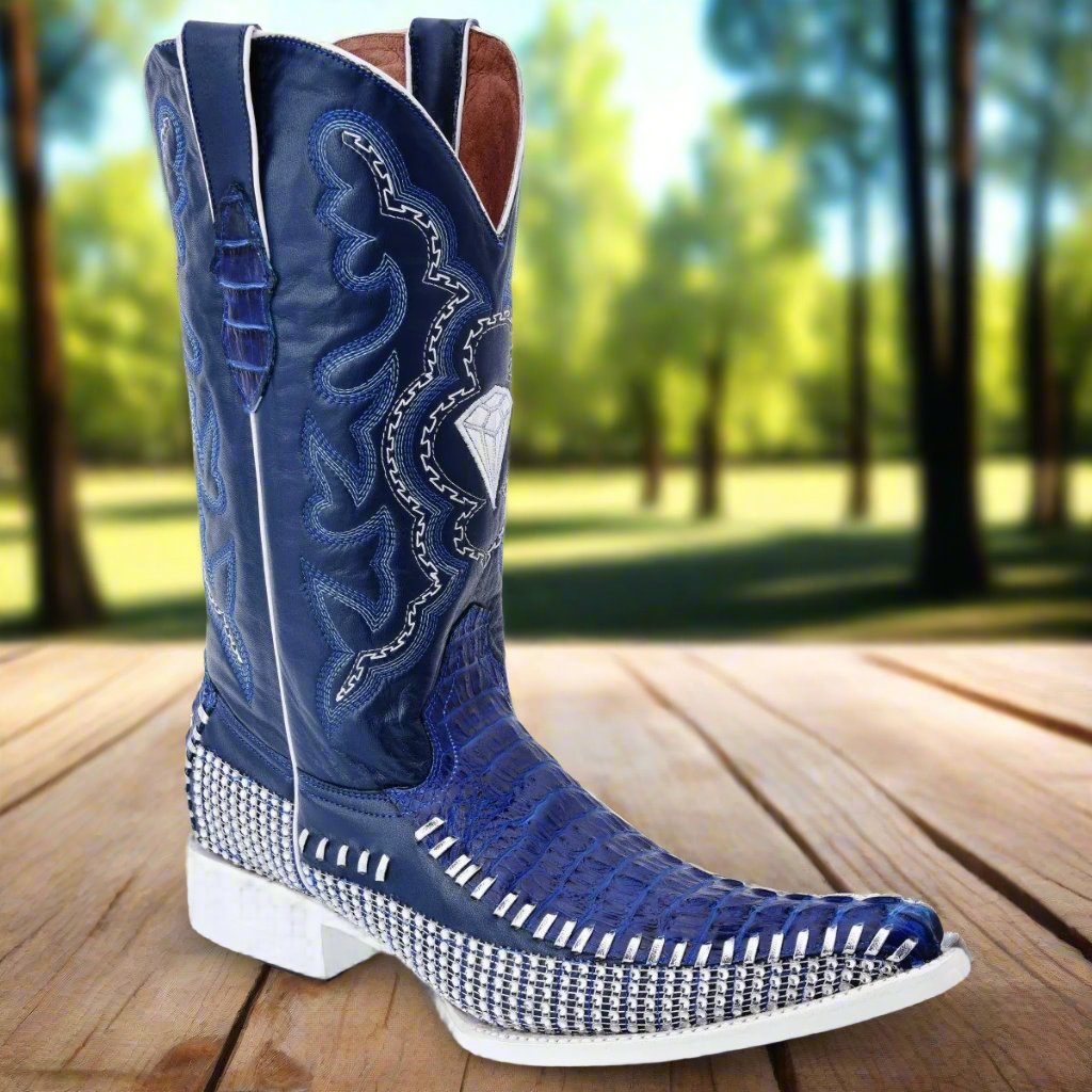 Botas vaqueras para hombres - Hechas con piel de la mas alta calidad, cuero grabado (imitacion cocodrilo) adornadas con pedreria. Fabricadas en México por expertos artesanos.