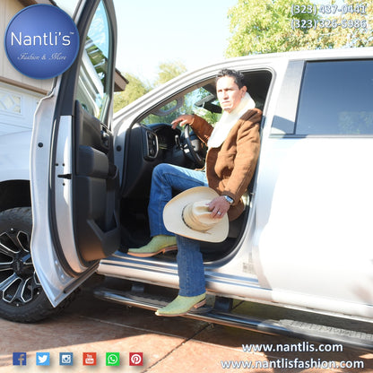 Chamarra de gamuza para hombre con forro de lana natural / Men's leather suede jacket with wool lining.