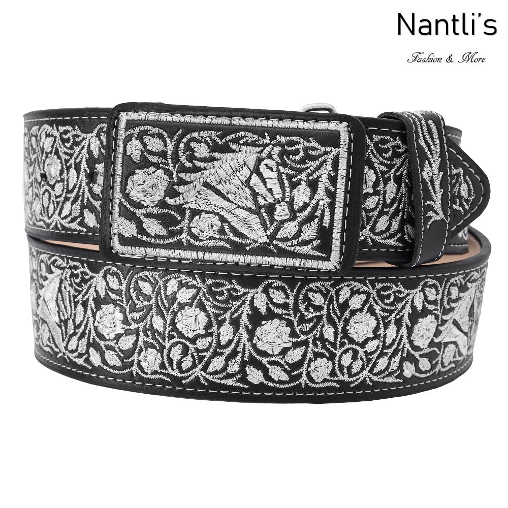 Leather belt with embroidered designs. Embroidery made with metallic threads. This western belt works also with casual look, charro suits and mariachi outfits, for both men and women. Made in Mexico.