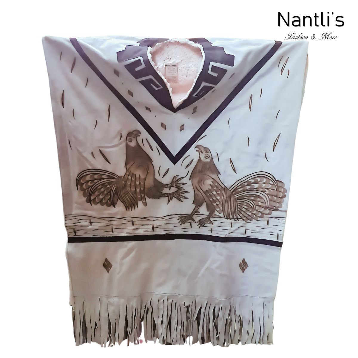 Jorongo Mexicano TM-LMGC003 Gaban de Cuero Pirograbado Leather Mexican Poncho with Pyrography Art.