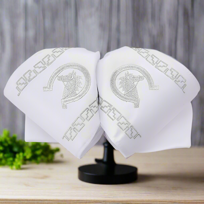 Moño bordado para charro o mariachi con cinta de elástico para el cuello. El bordado es hecho con hilos metálicos. / Traditional Mexican embroidered bow tie for charro or mariachi with an elastic band for the neck. Embroidery is made with metallic threads, made in Mexico.