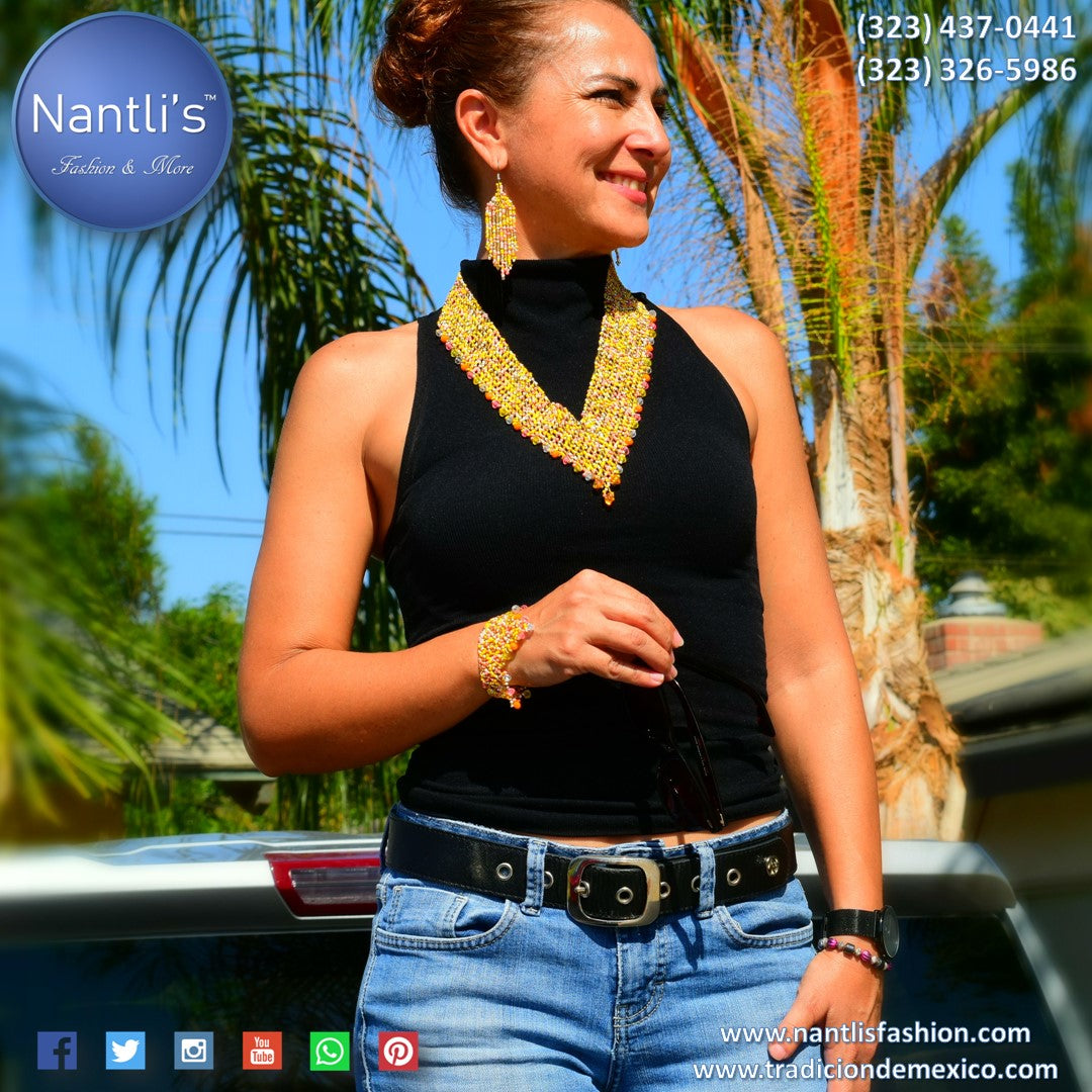 Elegante juego de aretes, collar y pulsera de chaquira, diferentes formas, que lucen increíbles con prendas casuales y elegantes.