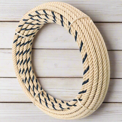Reata para charreria o para vaqueros. Ideal para lazar, guiar o amarrar caballos o ganado, hecho en Mexico. Medida Aproximada = 14 Brazadas / Lariat for charreria or cowboys. Ideal for lassoing, leading or tying horses or cattle, Made in Mexico.